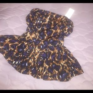 CLEARANCE ‼️$275 Tags Still Attached‼️ 🎆Absolutely stunning Point Play bustier with figure flattering peplum design. Rich brown, black & cream silk/cotton blended fabric featuring bright Tanzanite colored Leopard spots make this a showstopper! The amazing quality of the material makes this visually stunning while still remaining functional & very comfortable! Bust 15" (flat/unstretched) with adjustable elastic straps for custom sizing & zipper closure.