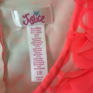 A beautiful spring coral orangey color with a lacy overlay. This is a beautiful dress with pretty rhinestone centered flowers on the left strap. It was only worn one time and is in perfect condition. Please feel free to make an offer using the offer button! MEASUREMENTS: FLAT 35inches L 16 1/2 inches across chest W