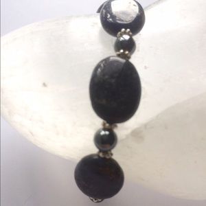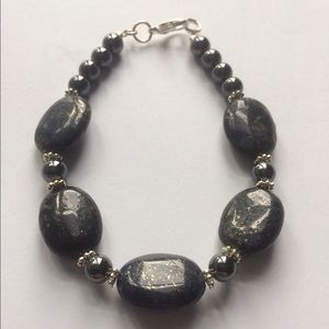 Dark Blue Goldstone with Black Hematite right now doesn't have a charm but will put on one of your choice Brand New Never Worn but no tags as I made it size is 7 1/2" long