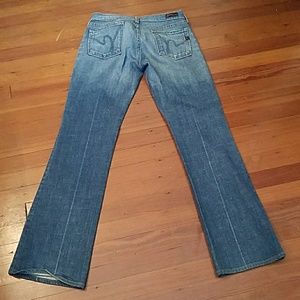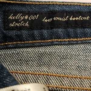 Citizens of Humanity, stretch, low waist Bootcut, Distressed jeans. Kelly#001 98% cotton, 2% lycra Measurements unstretched Waist 15 inches across Hips 18 inches across Rise 7 inches Inseam 32 inches
