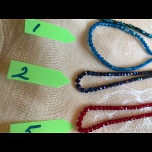 @samanthaleanne7 #1 listed is no longer in stock. FYI. And the one that looks like tigers-eye beads. I can make a wristlet or shorter necklace but I don’t have 200 of those beads. No clear -except the glued 3 set on sale on Poshmark. That’s a great deal if you don’t meet breakaway. I do have A few more pink and maybe one more lavender matte color too. I think almost every other color is available but I’ll need to double check,