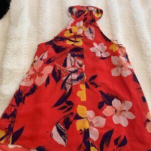 JAPNA Red Floral Keyhole Sleeveless Blouse