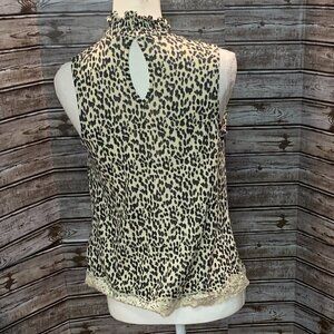JOLT Leopard Print Sleeveless Turtle Neck With Lace Trim