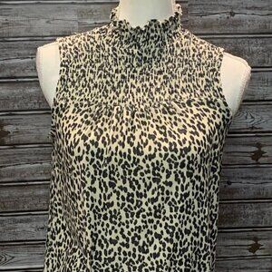 🔥🔥SALE🔥🔥JOLT Leopard Print Sleeveless Turtle Neck With Lace Trim