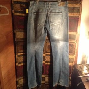 5 pocket design zip front with button close JUST CAVALLI JEANS!! Lowrise at 7", inseam 32" MADE IN ITALY-SIZE 27 WAIST