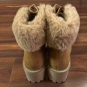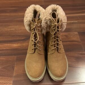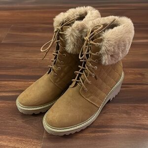 🌿SALE🌿NICOLE MILLER Latte Faux Fur Trim Quilted Wedge Ankle Boots size 9