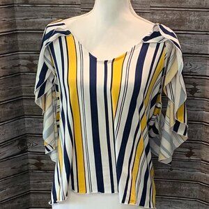 🔥🔥SALE🔥🔥OMEGA COLLECTION Yellow Striped Ruffled Cold Shoulder Top