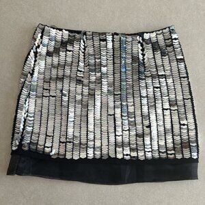 Skirt is pre-owned, so check photos for condition. Some of the sequins need re-securing, but that would be easy enough with some black thread and some patience. I don't really have the materials to do it right now. I don't think any sequins are missing, but it would be very easy for me to miss something like that, so please be aware of any possible issues related to sequins. Lowering the price to move it on, but please be aware of condition.