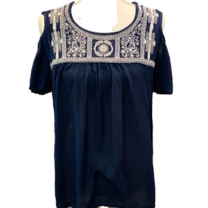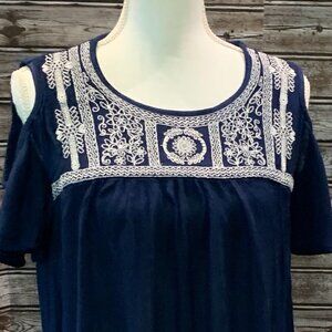 ST. JOHN'S BAY Cold Shoulder Embroidered Navy Blue Top