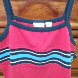 In like new condition very soft red with dark blue trim stretchy summer tank top. Clean no rips stains or tears Size 14/16 $7.