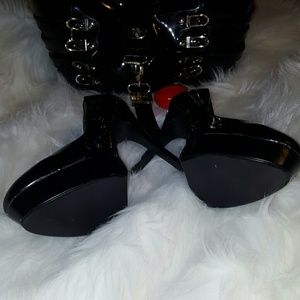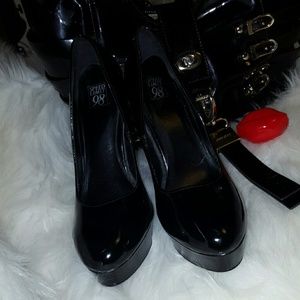 Excelent conditon Patent Black leather 4" Heels, never worn outside, worn twice. Goes with any designer and a variety of styles.