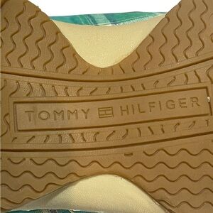 Great casual 80s boat style look! Featuring Tommy Hilfigers synthetic and leather uppers, with navy and green plaid detail. Great thick rubber outsoles. Excellent preowned condition!