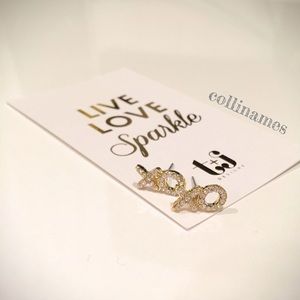 Sparkly, delicate XOXO Swarovski Earrings Gold. Materials: 18K Gold Plated, base metals, Swarovski crystals. Lead free, nickel free. Comes in retail packaging: card stock backing and plastic wrap.