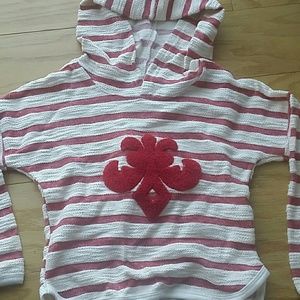 Adorable hoodie for chilly summer nights. Stripes in burgundy and cream. Very cute.