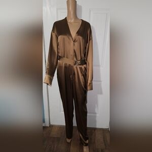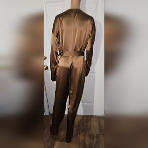 SALLY LAPOINTE Bronze Satin Jumpsuit