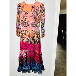 SALONI Bianca-B Desert Colorway Ikebana Print 100% Silk Tropical Dress Size US 0