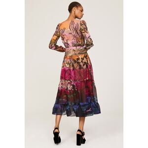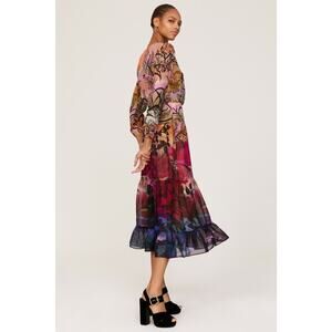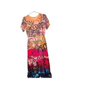 SALONI Bianca-B Desert Colorway Ikebana Print 100% Silk Tropical Dress Size US 4