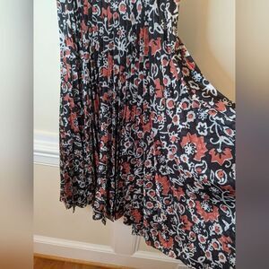 Elegant midi skirt with vibrant floral pattern. Features a flowy silhouette. Perfect for any occasion.