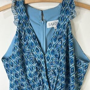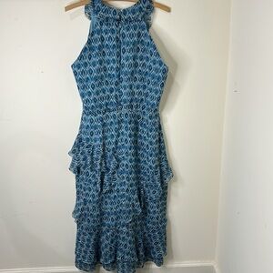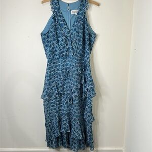 SALONI Blue Annisa Tiered Asymmetric Ruffle Silk Midi Dress Size US 8
