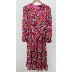 SALONI Isabel Floral Long Puff Sleeve 100% Silk Maxi Dress Size 0