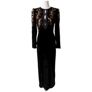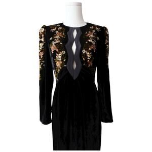 SALONI Jinx C Trimmed Floral Print Velvet Midi Dress Size 4