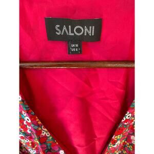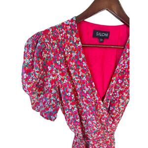 SALONI Lea Wrap Dress Red Pink Poppyfield Silk Size 6 EUC Maximalist Floral Mini