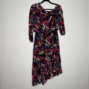 SALONI Lexi Floral Silk Asymmetrical Dress Vibrant Multicolored Size 4
