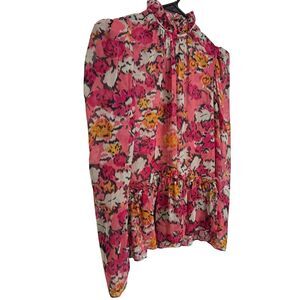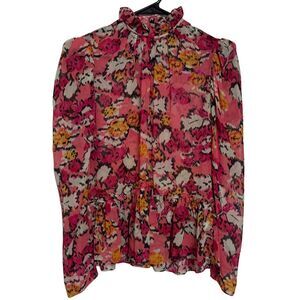 SALONI Mel Floral 100% Silk Ruffle Puff Sleeve Blouse Pink White Yellow EUC 4