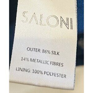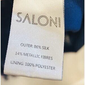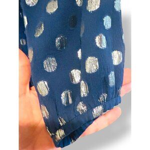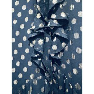 SALONI Navy Tilly Dress Womens Sz 6 Metallic Polka Dots Silk Ruffle Drop Waist