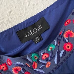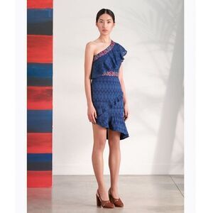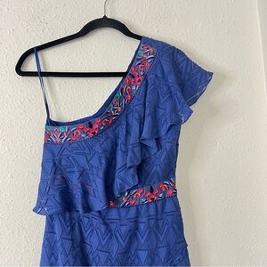 SALONI One Shoulder Ruffle Embroidered Silk Mini Dress Size 4