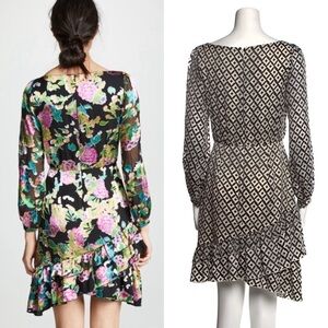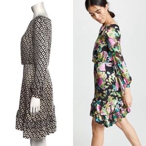 SALONI Silk Velvet Burnout Puff Long Sleeve Asymmetrical Ruffle Tier Hem Dress 4