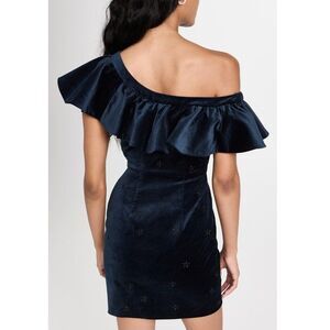 SALONI - Size 2 Greta Women’s Mini Off Shoulder Cotton Velvet Dress Dark Navy
