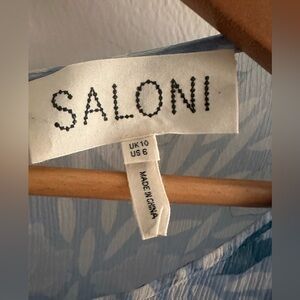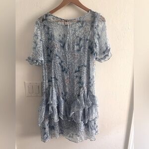 SALONI Thea Ruffled Floral Print Silk Crepon Mini Dress in Blue Sz S