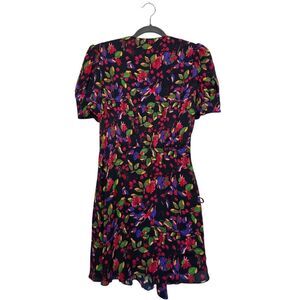 SALONI Lea Gathered Floral-Print Crepe De Chine Mini Wrap Dress | 2 | MSRP $565 | Measurements Laying Flat and Unstretched: Pit to pit 16" | Length 34" | Sleeve Length 11" | Color (Fuchsia)