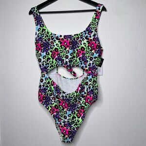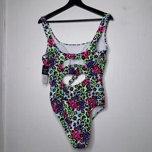 SALT + COVE Trendy Plus Size Leopard Love Cutout One-Piece Swimsuit