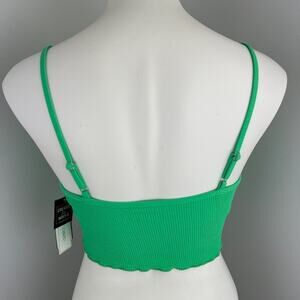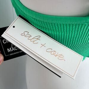 SALT + COVE Women Green Stretch Ruffled O-Ring Textured Scoop Neck Swim Top