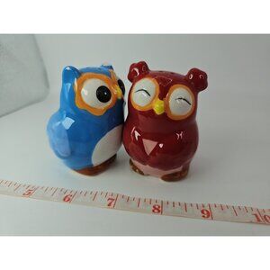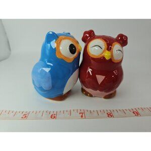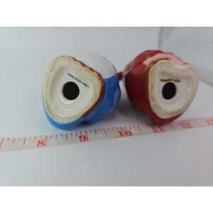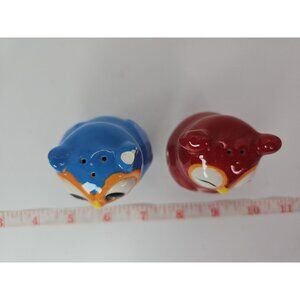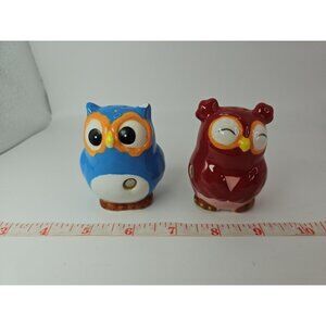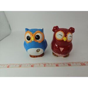 SALT & PEPPER SHAKERS Kitchen Kissing Owls Topsy Turvy Magnetic VTGThe Kissing Owls Topsy Turvy Magnetic Salt and Pepper Shaker Set is a cute and whimsical addition to any kitchen. Hand painted earthenware and ceramic shakers feature a colorblock pattern and a 1950s style design. The set includes a salt shaker with a unique owl shape, perfect for all occasions. Magnetic features make it easy to keep the shakers together when not in use. This original set from CBK adds a touch of charm to your kitchen decor and is sure to be a conversation starter.
