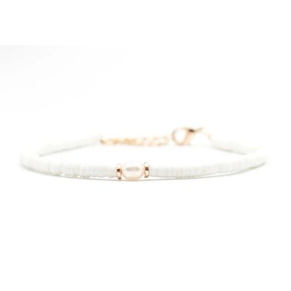SALTI CALI Windansea Bracelet Pearl Salty Shells NWT White & Gold