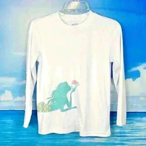 SALTWATER Girls WHITE Swimshirt MERMAID Graphic LOGO Lightweight Stretch size M