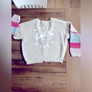 SALTWATER LUXE Colorful Knit Sweater with 'Hello SunShine” on back Design! NWT!