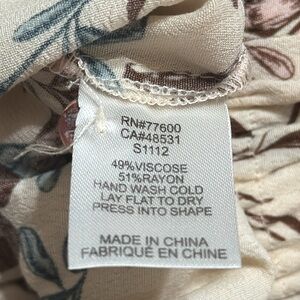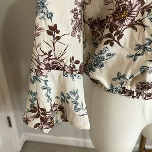 SALTWATER LUXE LA Top Blouse 3/4 Sleeves Cream Blue Floral size Large L Gathered