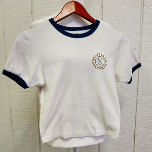 SALTY CREW Women's White Cropped Logo Short Sleeve Tee Beach Summer Ocean