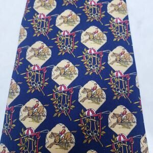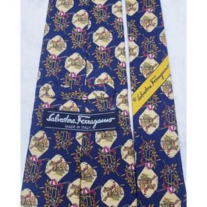 SALVATORE FERRAGAMO 100% Silk Tie Equestrian Horses Jockey Made in Italy ~ Blue