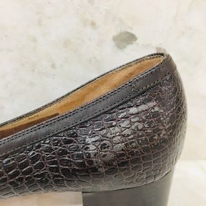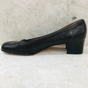 SALVATORE FERRAGAMO {8A2} Brown Embossed Leather Pumps