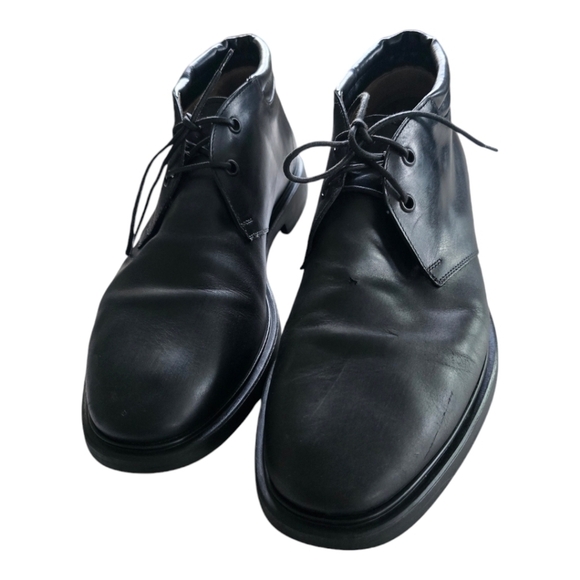 SALVATORE FERRAGAMO Ankle Boots 9D Mens Chukka Black Leather Laceup Luxury