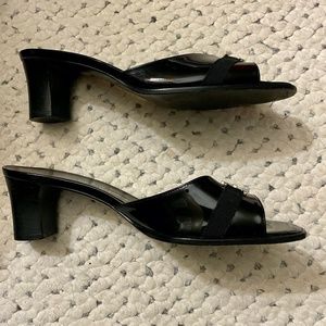 Salvatore Ferragamo Horse Bit Black Patent Heels 10 logo kitten