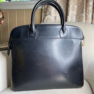 SALVATORE FERRAGAMO BLACK LEATHER Gold STUDDED DOMED SATCHEL Handbag Shoe Accent.
