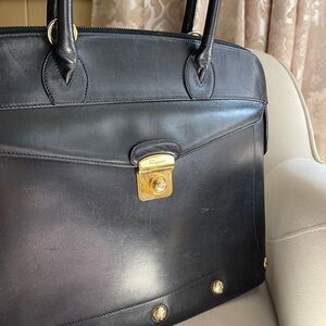 SALVATORE FERRAGAMO BLACK LEATHER Gold STUDDED DOMED SATCHEL Handbag Shoe Accent