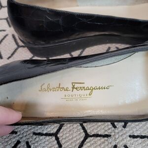 SALVATORE FERRAGAMO BLACK LEATHER WEDGE LOAFER, SZ 8.5