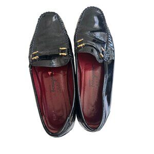 SALVATORE FERRAGAMO Black Patent Leather Loafers Flats Size 5